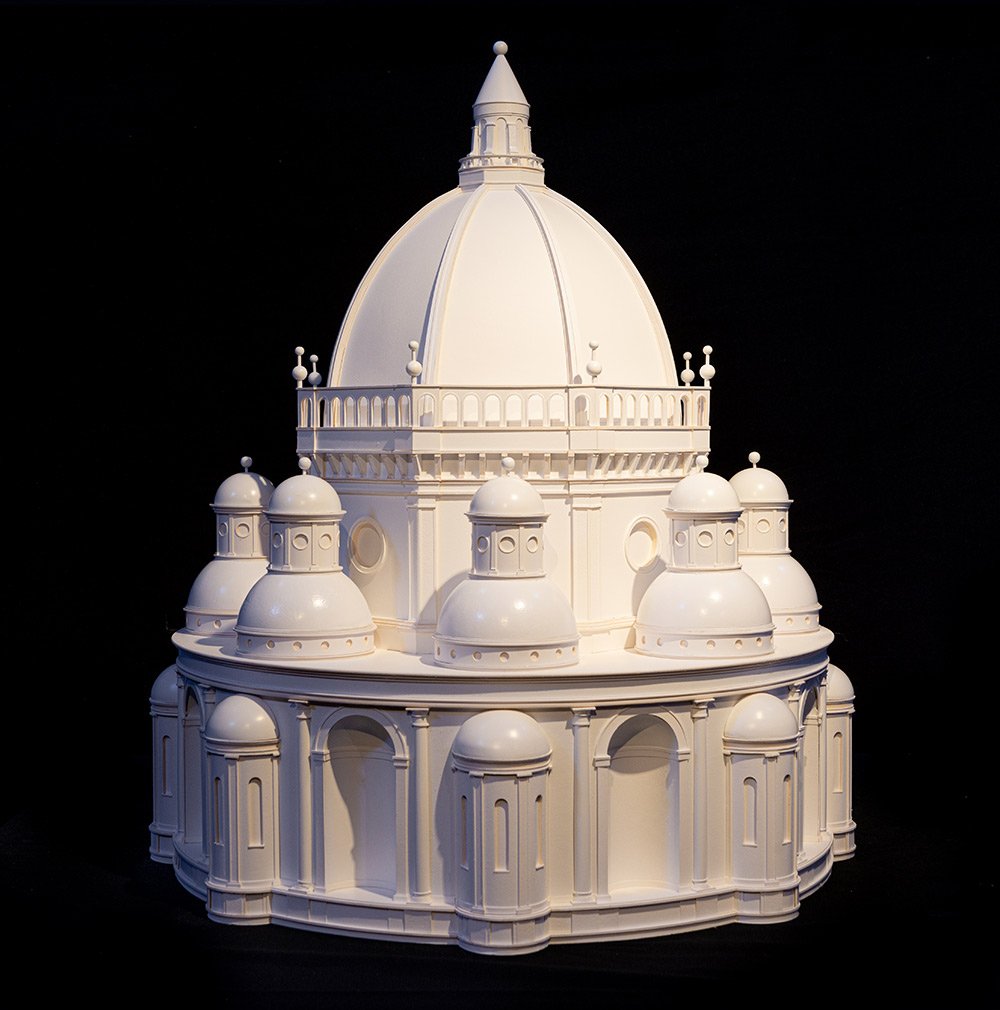 La complejidad de los estudios sobre geometría modular que aborda Leonardo, también en proyectos arquitectónicos, lo demuestra este modelo que ofrece efectos luminosos especiales y su concepción de la estructura como un organismo perfectamente articulado, Destacado por la tridimensionalidad del modelo..