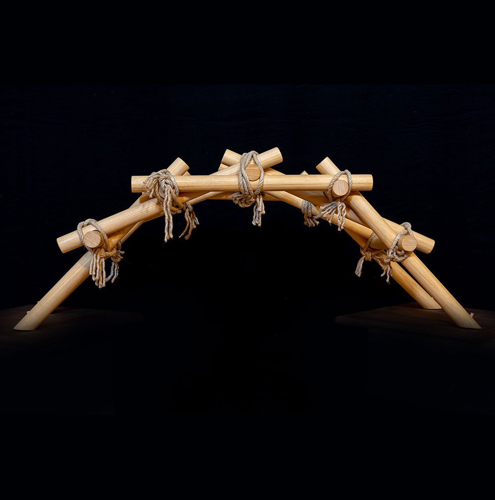 Los primeros puentes volantes diseñados por Leonardo y destinados a fines militares, ya que favorecían el factor sorpresa y los rápidos movimientos de tropas y artillería., estaban hechos de materiales fácilmente disponibles, como madera y cuerda., por lo tanto sustancialmente temporal y rápidamente removible. En la carta al Moro de 1481, el artista también afirmó su competente habilidad en la construcción de tipos “muy ligero y fuerte”. Pero Leonardo también prestó especial atención e interés a la elección del material de madera., teniendo en cuenta especialmente el grado de su resistencia: una medida derivada de su experiencia en el campo de la arquitectura, donde las costillas, pequeño y grande en tamaño, tuvieron que soportar arcos abovedados con su estructura.